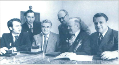 Лауреаты Государственной премии СССР: И. С. Никоненко, Е. Н. Алтунин, В. Д. Чернышев, Г. И. Ширенко