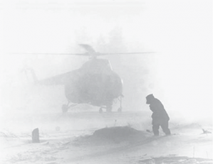 Вертолёт Ми-4 пилотировал командир вертолетного авиаотряда Тюменской авиагруппы Юрий Александрович Южаков. Летим на Север по экспедициям «Главтюменьгеологии». Из Тюмени вылетаем в таком составе: Первый секретарь Промышленного обкома КПСС Александр Константинович Протозанов, Министр геологии СССР, действительный член Академии Наук СССР Александр Васильевич Сидоренко, Министр геологии РСФСР Сергей Васильевич Горюнов, Заведующий сектором геологии ЦК КПСС Аркадий Андреевич Ямнов, начальник «Главтюменьгеологии» Юрий Георгиевич Эрвье, главный геолог Усть-Балыкской экспедиции Фарман Курбанович Салманов, журналисты – фотокорреспондент Майя Скурихина и её муж очеркист Сергей Богатко, я, кинооператор Свердловской киностудии Олег Ракутько и мой ассистент Славомир Прокупек.