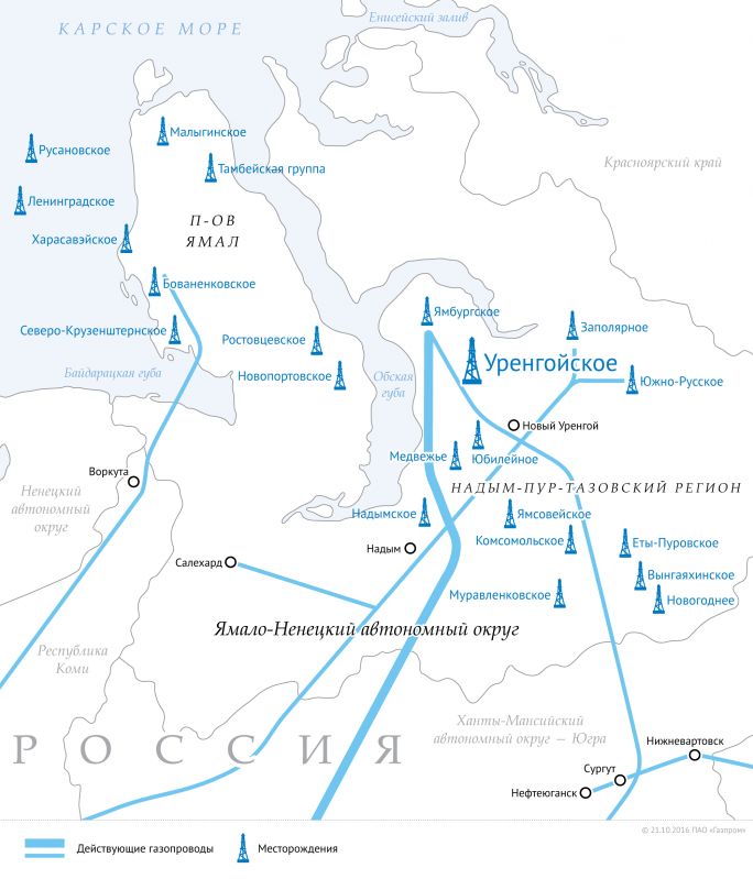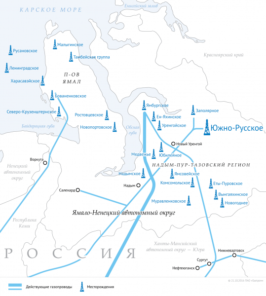 Заполярное месторождение выведено на полную проектную мощность — 130 млрд куб. м газа в год, что сделало его самым мощным месторождением в России.