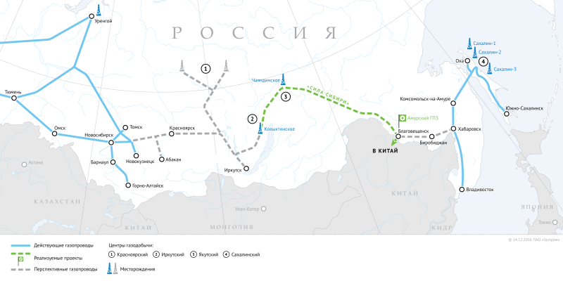 «Газпром» приступил к формированию центра газодобычи в Якутии. Принято инвестиционное решение по обустройству Чаяндинского месторождения и строительству газопровода от Якутии до Благовещенска — первого участка новой ГТС «Сила Сибири».