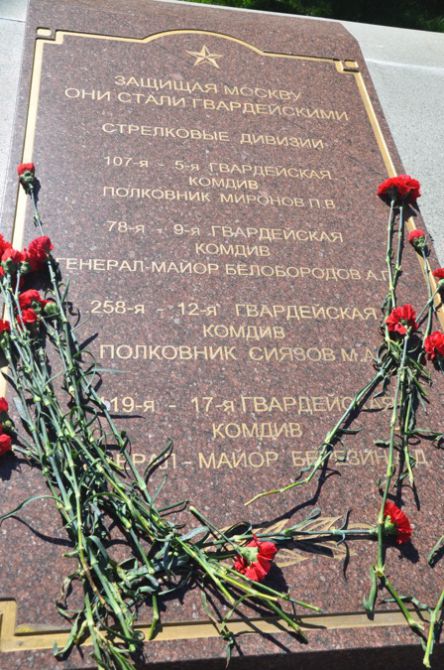30 ноября 1941 года на 42-м километре Волоколамского шоссе держала оборону 78-я стрелковая дивизия полковника Афанасия Белобородова. Немецкие войска наносили в этом районе удар силами 10-й танковой и моторизованной дивизий СС «Дас Райх», 252-й и 87-й пехотных дивизий вдоль шоссе. В ожесточённых боях советские войска удержали этот рубеж, а позднее, в декабре, перешли в наступление. За отвагу в боях, стойкость и мужество 78-й стрелковой дивизии 26 ноября 1941 года было присвоено звание 9-й гвардейской.