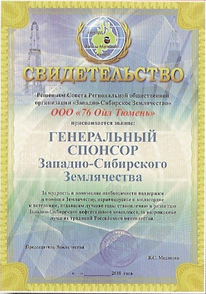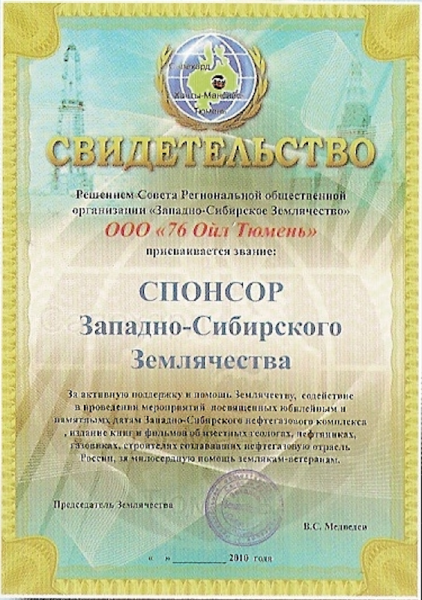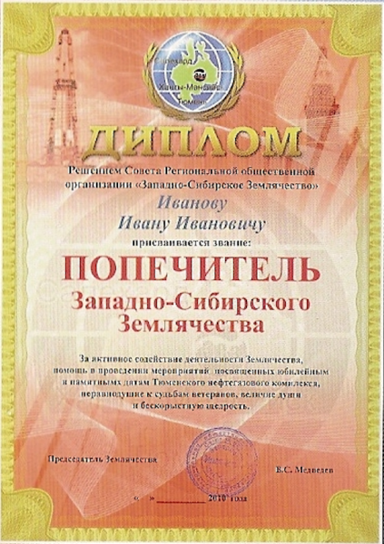 Благодарим наших попечителей. Дипломы и памятные свидетельства им будут вручены на ближайшем Совете РОО «Западно – Сибирское землячество» в Москве.