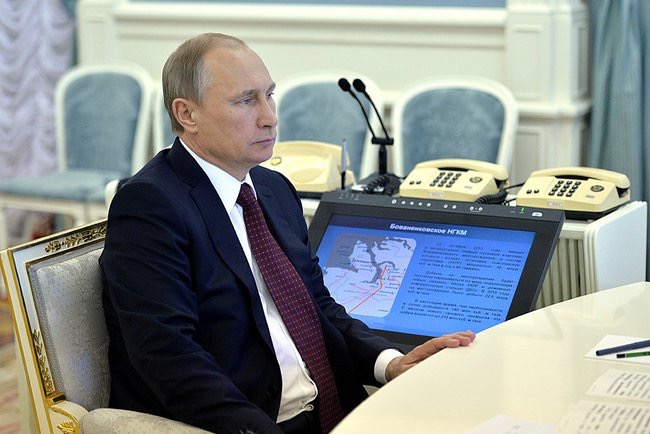 А.Миллер: Уважаемый Владимир Владимирович, новый газовый промысел на Бованенковском месторождении введён в эксплуатацию. Газ поступает в систему магистральных газопроводов Бованенково – Ухта.