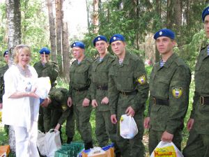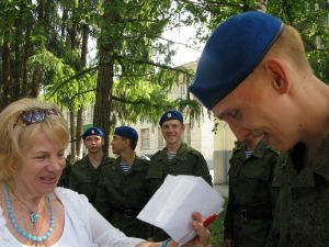 Повод торжественный и волнительный: спешим поздравить земляков - новобранцев с принятием военной присяги на верность Родине. Жизнь даже не идет семимильными шагами, а мчится вперед, как колеса нашего «Мерседеса». У Тамары Кондратьевны этот год – 14-тый по счету: именно столько лет она участвует в жизни земляков – военнослужащих. Но привыкнуть так и не может. Не спит ночь накануне, на 20-тый раз пересчитывает подарки своим «солдатикам», сверяет время… А для нас это путешествие – впервые. Подъезжаем. Ворота распахиваются, дежурный отдает честь. Нас ждали!