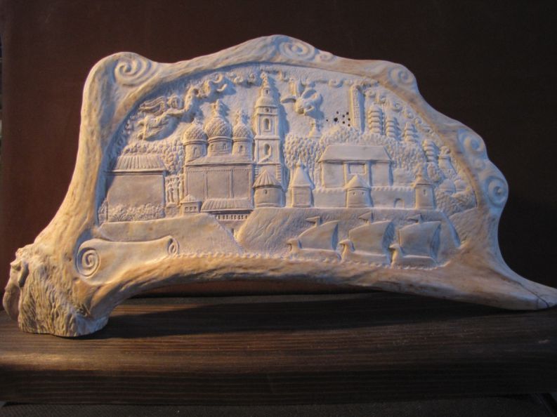…Давным-давно плыли ладьи атамана Ермака по уральским рекам из России-матушки в земли Сибирские… за Урал-Камень…  И по бескрайним болотам, где пешком, где волоком,  по древнему Тоболу  вышли на просторы Иртыша…  Поднялись на высокий Яр, омываемый рекой…  А было это в ночь на Троицу…  и привиделся  атаману и дружине Белый Город в Небесах над крутым Яром…  И тогда атаман приказал разобрать струги-ладьи  и поставить Часовню в честь Святой Троицы, обнести ее частоколом крепким... Разобрали казаки ладьи свои да поставили Часовню-Церковь. Тут и заночевали… Отсюда  и пошло название города: Тоболеск Ладейный.  И долгое время так и прозывали его…