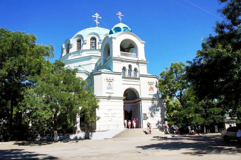 Этот храм, являющийся одной из доминант исторического облика Евпатории, заложен в 1893 году в память освобождения города от неприятельских войск во время Крымской войны. Он второй в Крыму по высоте, площади и вместимости. Одновременно в нем могут находиться две тысячи прихожан.