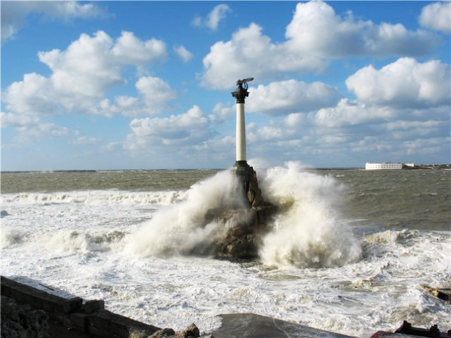 Памятник затопленным кораблям. Монумент сооружен в 1905 году к 50-летию Первой обороны Севастополя, во время которой были затоплены русские парусные корабли, «чтобы заградить вход неприятельским судам на рейд и тем самым спасти Севастополь» (адмирал П.С.Нахимов).