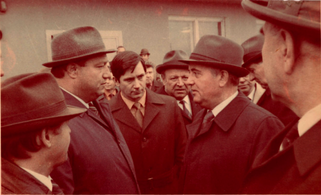 И вот он, долгожданный момент. На подъезде к цеху показалась большая кавалькада машин. Первыми шли автомобили сопровождения и охраны. Все произошло молниеносно – площадка перед столовой, где мы стояли, в одно мгновение заполнилась людьми в штатском, и из микроавтобуса черного цвета вышел начальник охраны, а затем уже М.Горбачев с супругой. А в это время продолжали подтягиваться многочисленные легковые автомобили с сопровождающими лицами – секретари обкома, окружкома и горкома партии, министры союзного значения и много других лиц, всего около пятидесяти человек.